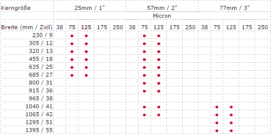 Die MIC Angaben der Folienstärke, in Mikrometer (auch als Mo oder Mü bezeichnet)
